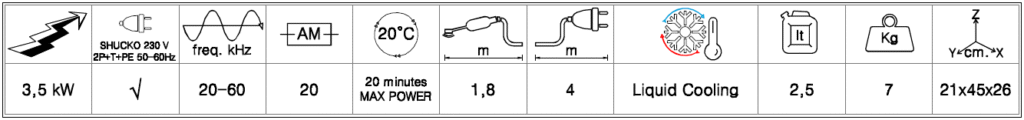– Maximum power: 3.5 kW selectable on 10 levels